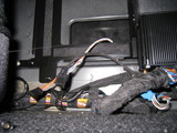 The two CD changer cables that I need go under the center console. In this picture, they are above and left of the big blue connector.