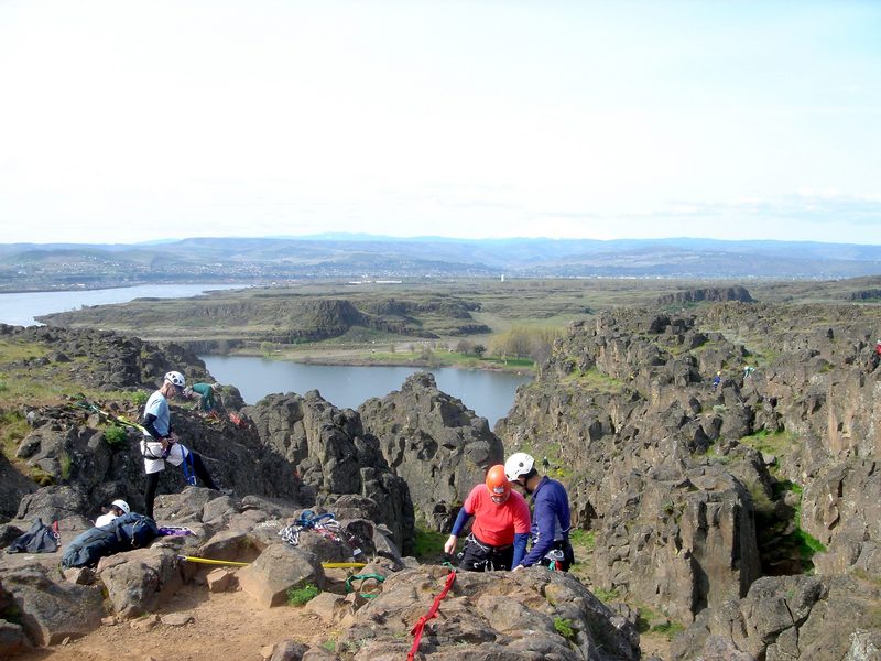(Prev) Casey helping Path with her first rappel