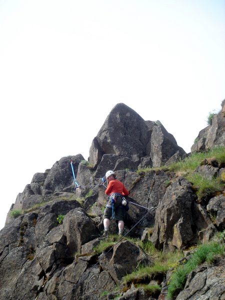 (Prev) Looking down on the large chimney, waiting to rappel