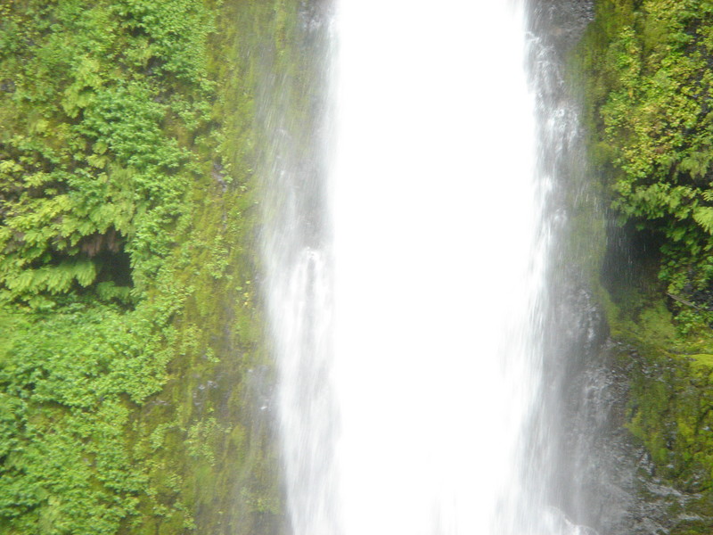both sides of the tunnel behind the falls